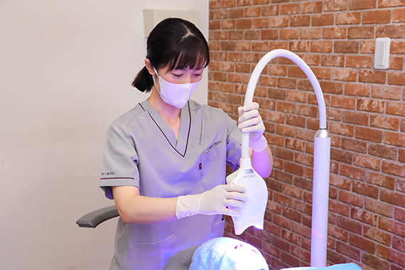 歯や歯ぐきに配慮しながら、ホワイトニングを行います。施術中の刺激や違和感にも注意を払い、安心して受けていただけるようサポートいたします。施術後は歯の色味の変化を一緒に確認します。